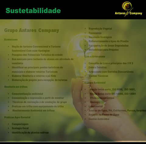 O Grupo Antares Company possui profissional capacitado para prestar consultoria na área de Meio Ambiente, sua Marca acredita na sustentabilidade Empresarial, fato que a preservação do meio ambiente e a única fora para garantir que as gerações futuras tenham uma chance assim como fauna e flora em nossos Pais.
